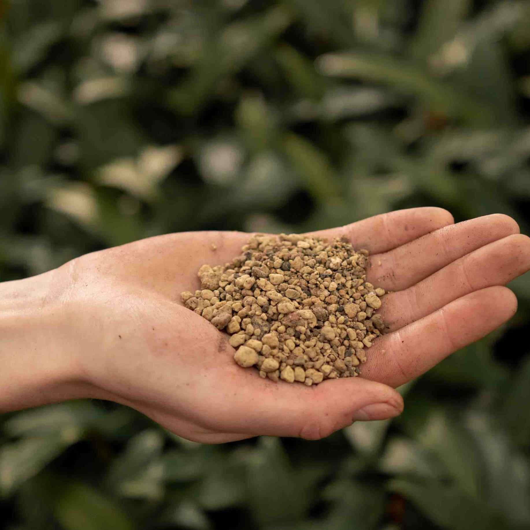 Melhora a estrutura e evita o excesso de rega, levando ao crescimento ideal e resiliência ao estresse. Ideal para plantas maiores, cactos e suculentas. Também útil como cobertura para prevenir mosquinhas dos fungos.