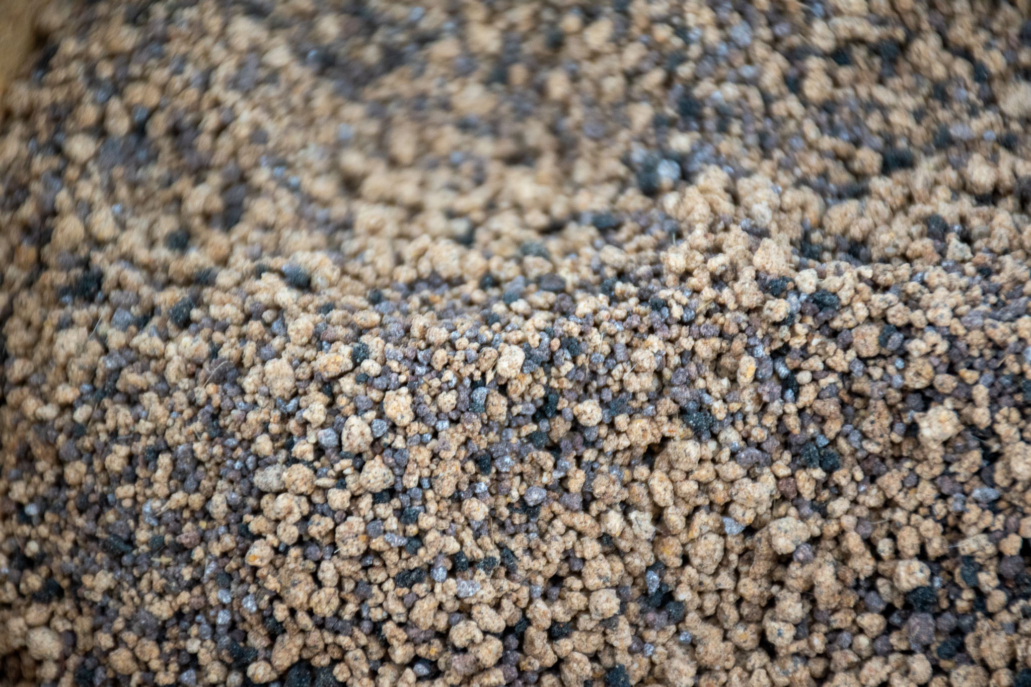 Os ingredientes orgânicos incluem produtos residuais, como farinha de soja, cascas de cacau e farinha de penas.