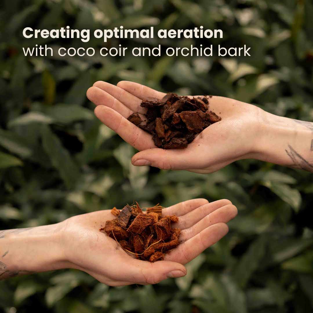 Como os Anthuriums são epífitas e geralmente têm raízes maiores, há muita casca de coco e Casca para permitir espaço para isso. Os Anthuriums são propensos a apodrecer, então com a adição de Carvão vegetal ativado e perlit, uma combinação de aeração e purificação está a acontecer no solo a qualquer momento. Isso combate grandemente o risco de apodrecimento das raízes. O Substrato para Anthurium perfeito!