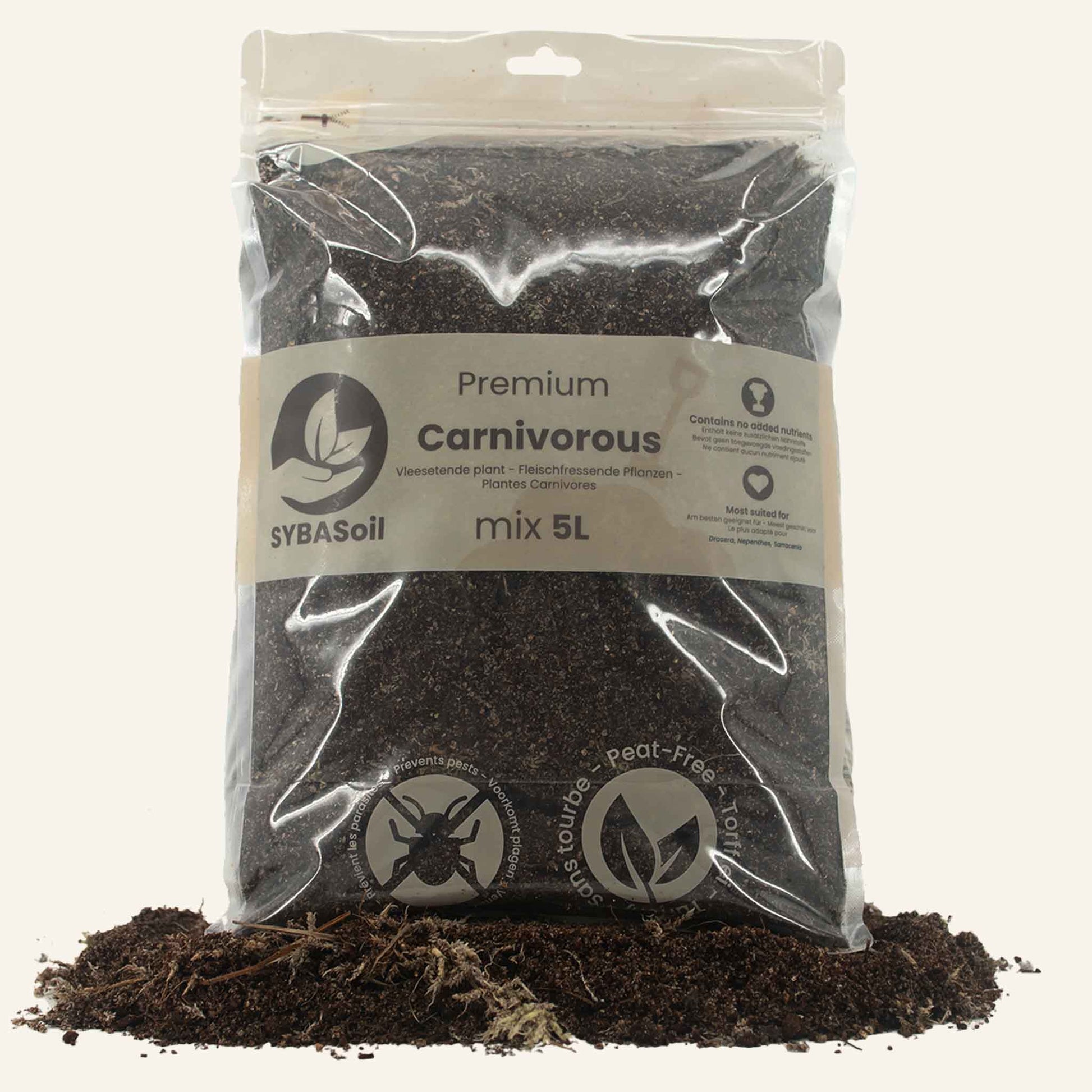 Os habitats das plantas carnívoras são variados, mas quase sempre envolvem solo com poucos nutrientes que é muito húmido. Locais comuns incluem charcas, corpos de água, áreas rochosas e pântanos. Elas obtêm quase zero nutrientes do solo, por isso é que esta mistura não contém fertilizantes.