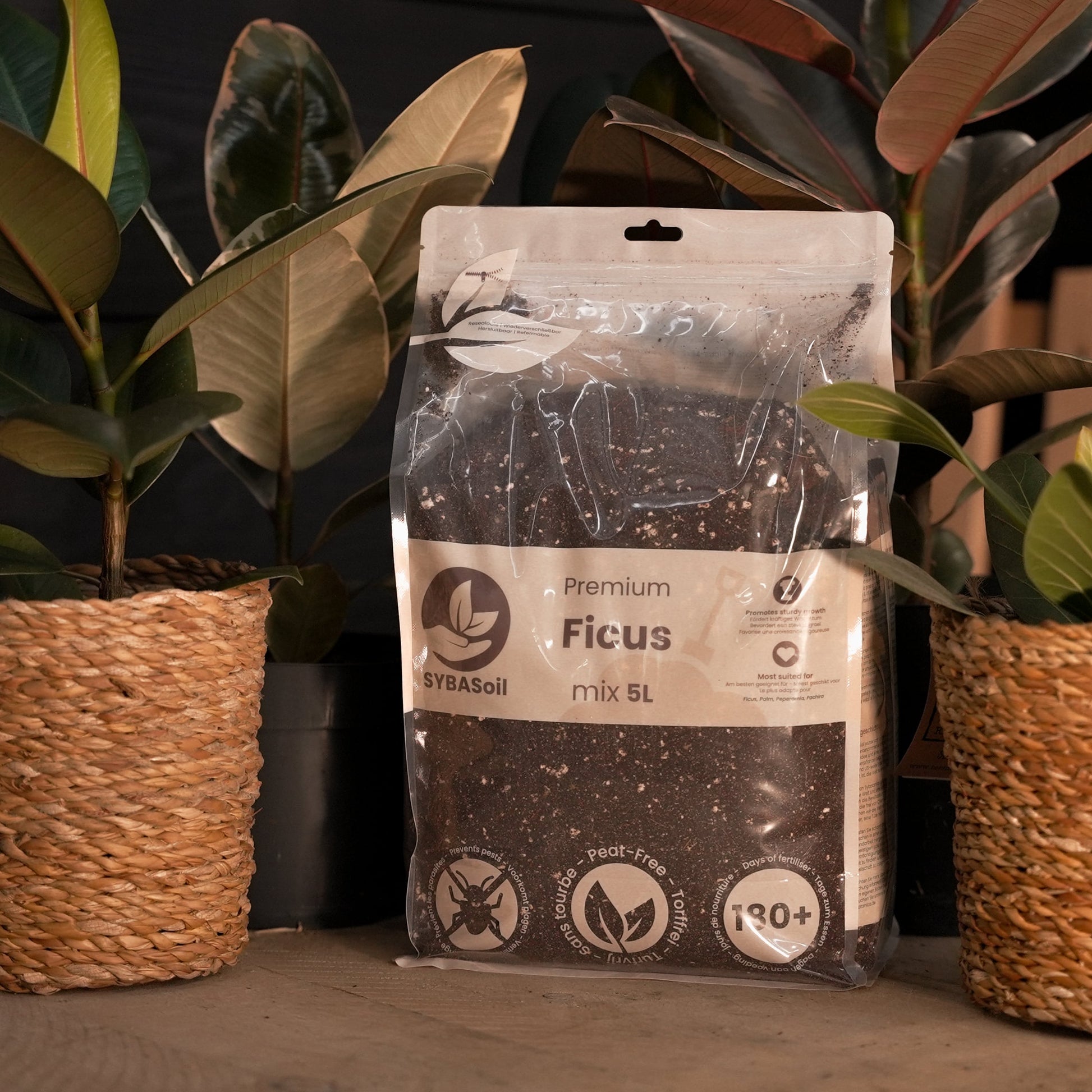 O ficus contém um grande número de espécies que variam de arbustos a vinhas e árvores. A maioria delas é nativa das áreas tropicais do Leste Asiático. São comumente referidos como figos. O ficus vem de um substrato que drena relativamente rápido, no entanto, o ambiente é geralmente úmido. Este Substrato para Ficus imita esse ambiente.